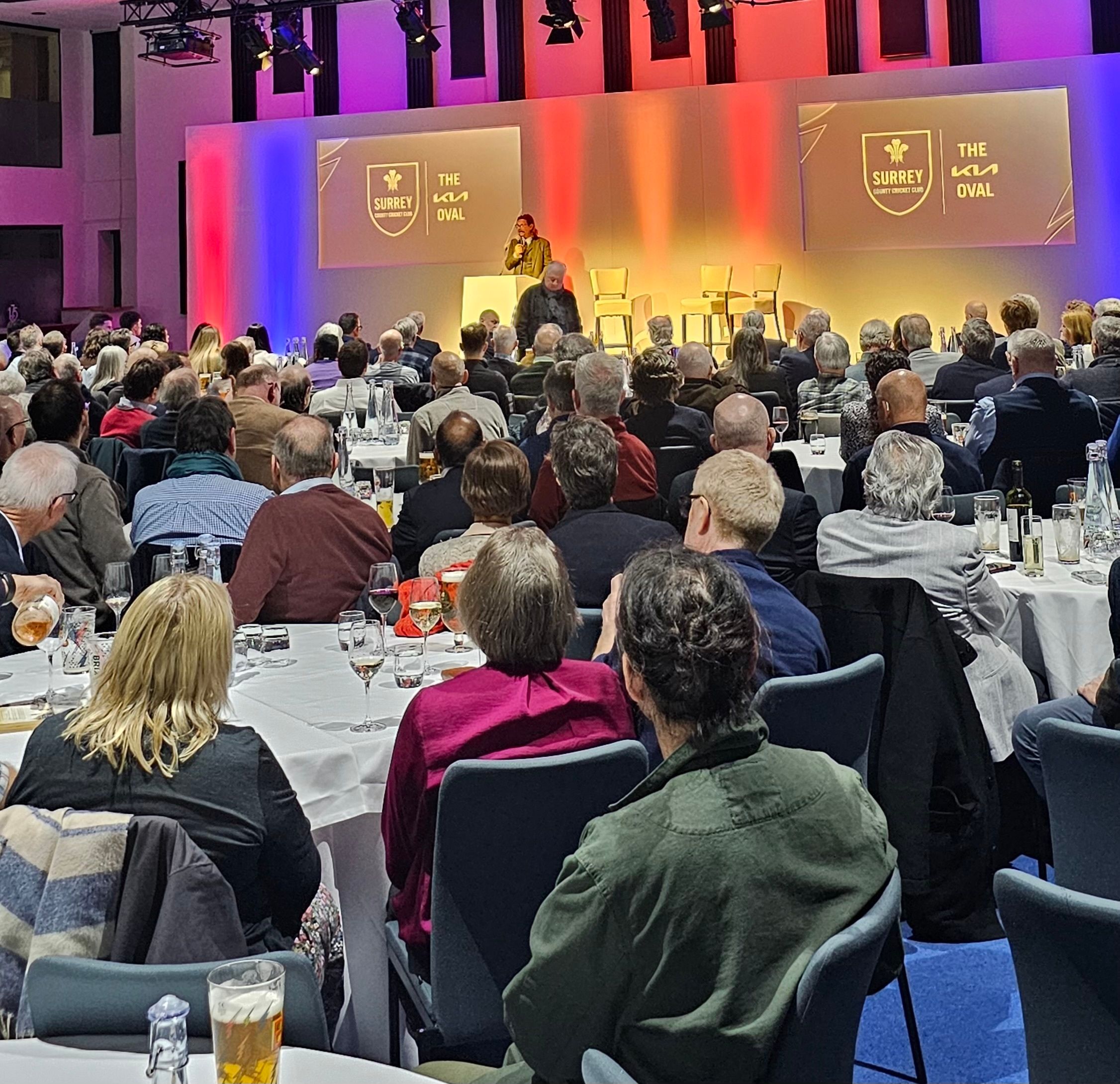 Hosting the pre-season members' dinner at the Kia Oval always makes me a little nervous, because I am standing in front of a room of people who can see me. Normally, I like hiding behind a microphone on the radio!